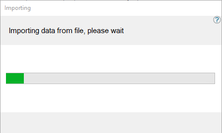 This dialog is displayed to show the progress of the excel importing. This dialog closes automatically when done and sends the user to the Excel Import Results View