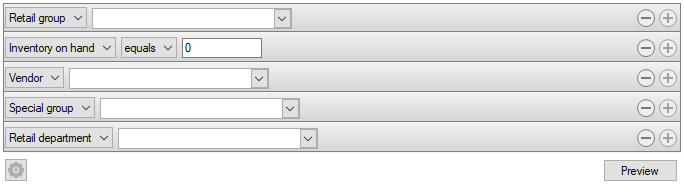 Adding the inventory on hand band will not filter the preview list, but the value will be used when generating the stock counting journal. |